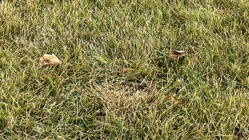 Кусочек травы с мертвым листом на земле