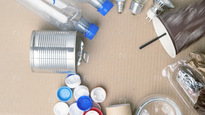 Куча мусора с банкой и бутылкой посередине