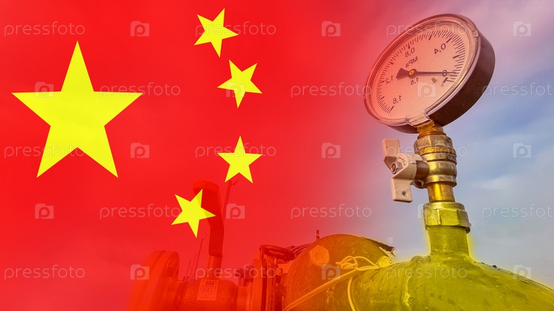 Красно-желтый китайский флаг с пятью звездами изображен рядом с манометром. Понятие напряжения и давления, поскольку манометр является символом измерения и контроля. Газовая труба
