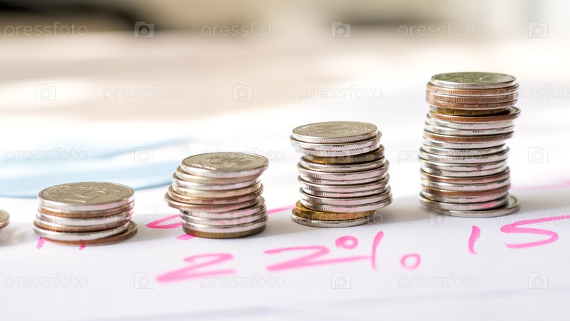 Стопка монет с розовым фоном и написанной на ней цифрой 2,5