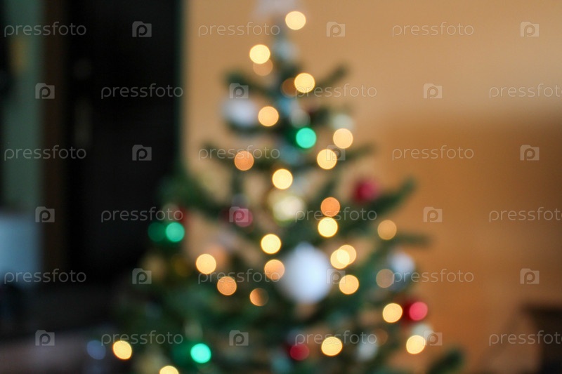 Разноцветное боке от елочных огней на заднем плане в квартире