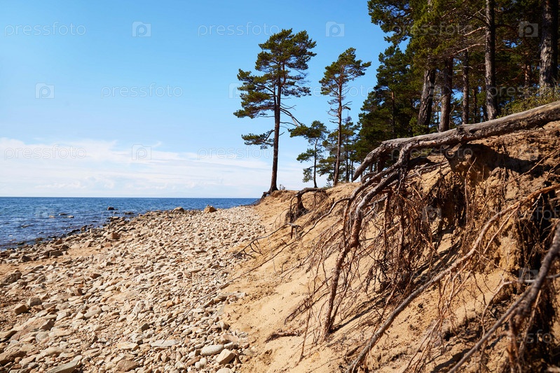 Сосны на пляже в солнечный летний день