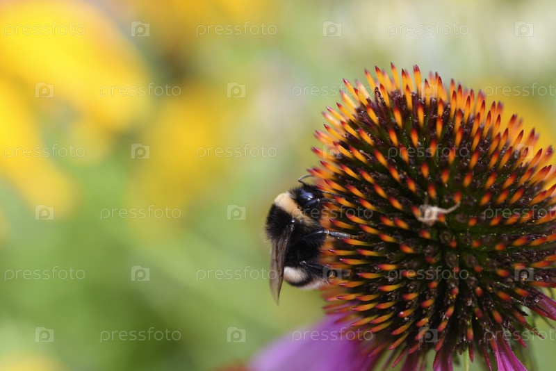 Рудбекия и пчела. Насекомое на цветке. Сочные краски в саду летом