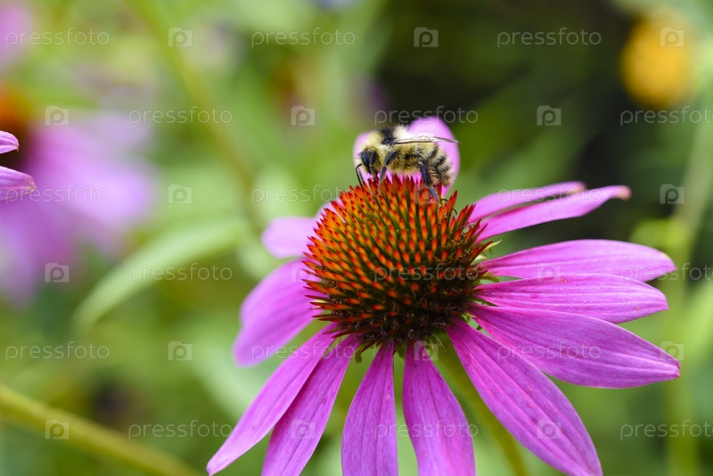 Рудбекия и пчела. Насекомое на цветке. Сочные краски в саду летом