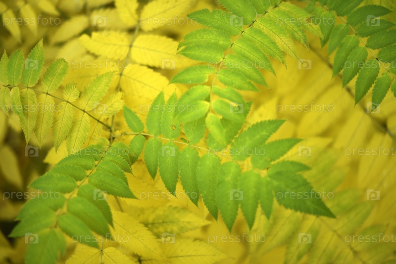Желтые листья рябины осенью. Крупные листья дерева осенью. Sorbaria sorbifolia