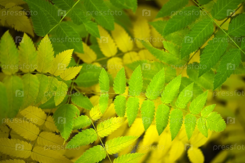 Желтые листья рябины осенью. Крупные листья дерева осенью. Sorbaria sorbifolia