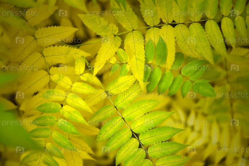 Желтые листья рябины осенью. Крупные листья дерева осенью. Sorbaria sorbifolia