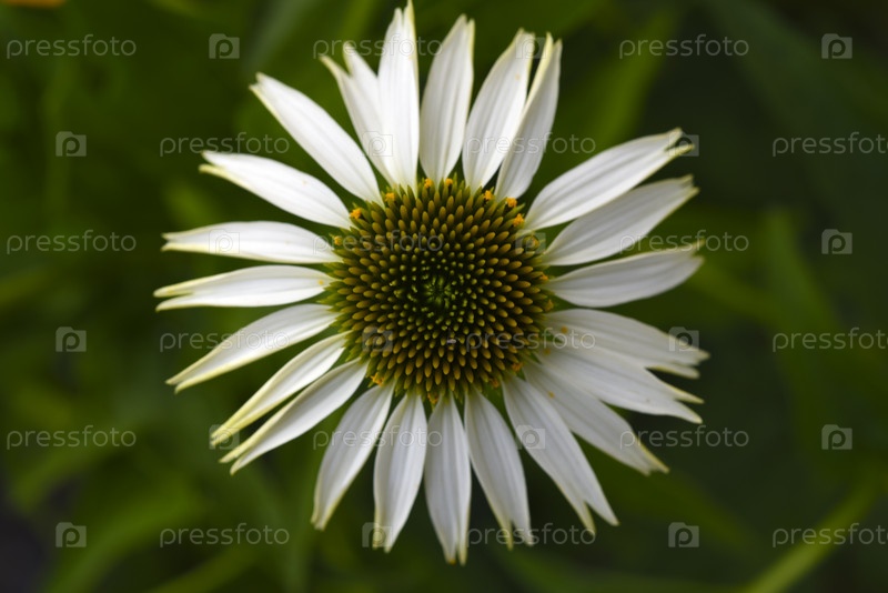 Желтые и белые ромашки крупным планом. Белый цветок, вид сверху