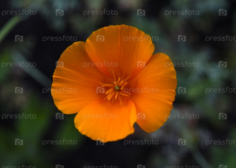Оранжевые цветы на откосе на зеленом кусте. Цветы эшшольции