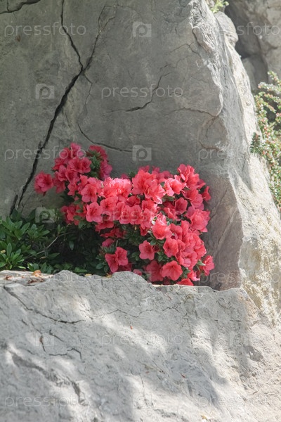 Крым, Ялта, Азалия, растущие на камнях