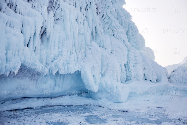 Скалы в снегу и огромные сосульки льда. Зимнее путешествие