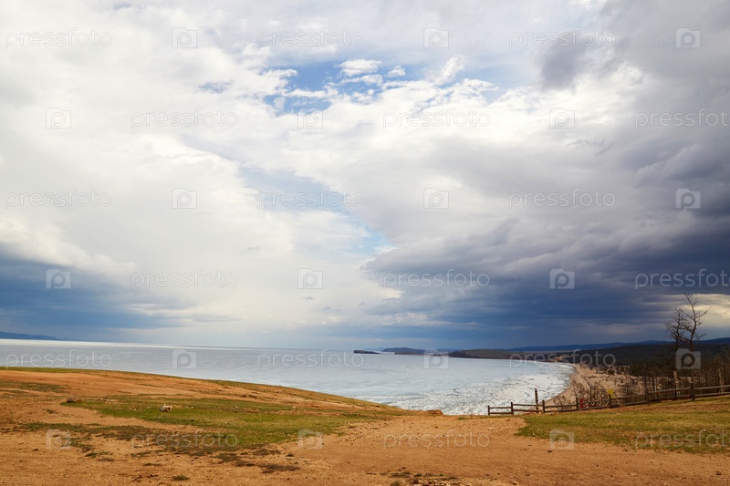 Облачное небо. Озеро Байкал во время ледохода, таяние льда