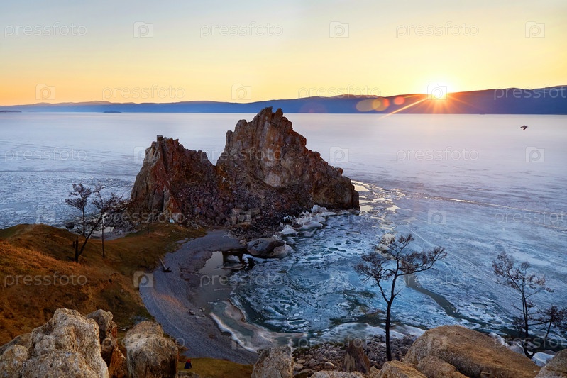 Прекрасный вид на мыс Бурхан или скалу Шаманка на закате