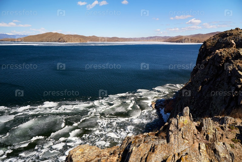 Весенний пейзаж озера Байкал в солнечный майский день