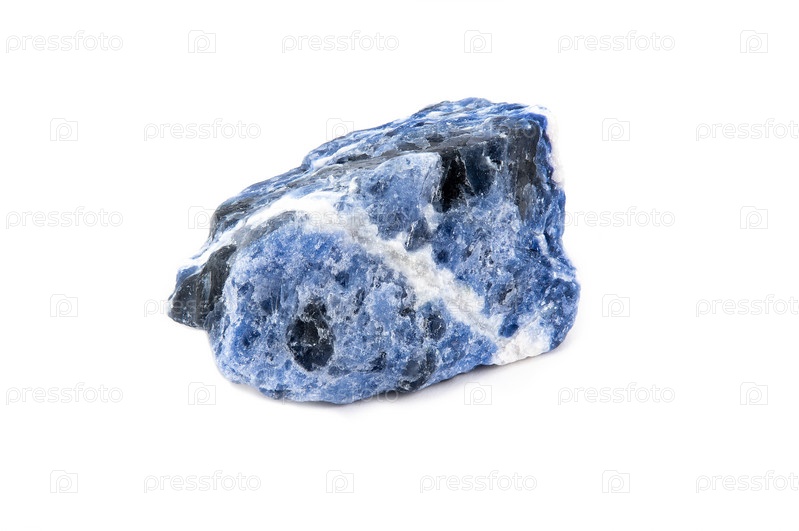 Кусок необработанного голубоватого содалита с белыми прожилками