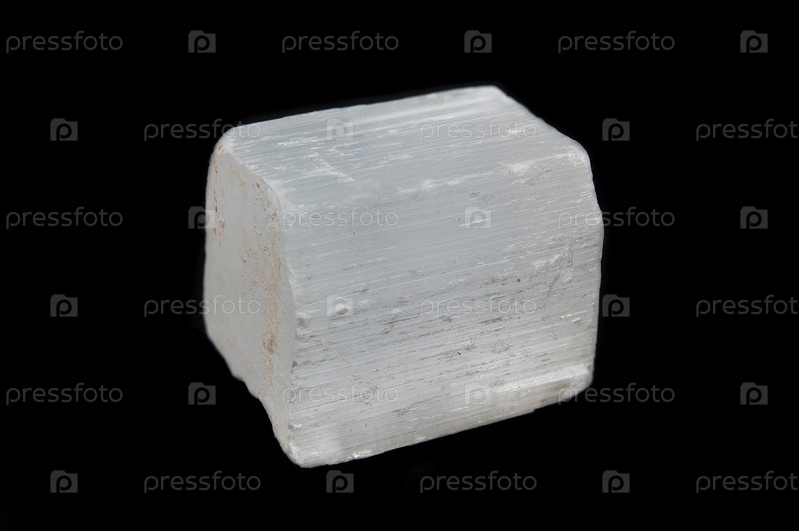 Кусочек ограненного кристалла селенита в форме небольшого куба с неровными краями