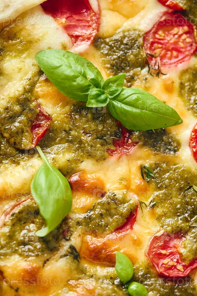Пирог типа галет из слоеного теста с начинкой из помидоров, сыра моцарелла и соуса песто. Галет Капрезе
