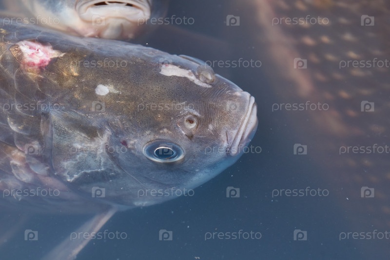 Караси плавают в искусственном пруду. Крупный план рыбы у поверхности воды - спокойное плавание под прозрачной гладью пруда