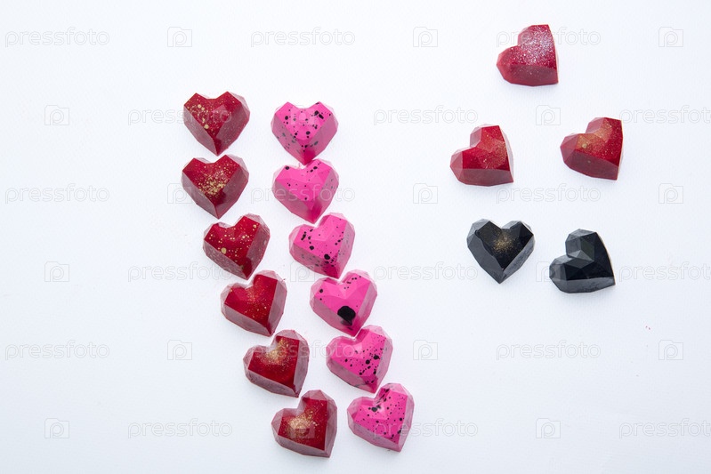 Вкусные шоколадные конфеты, крупный план, разные цвета