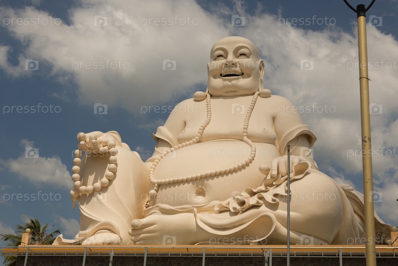 Большой смеющийся сидящий на открытом воздухе Будда в пагоде Винь Чанг в Южном Вьетнаме