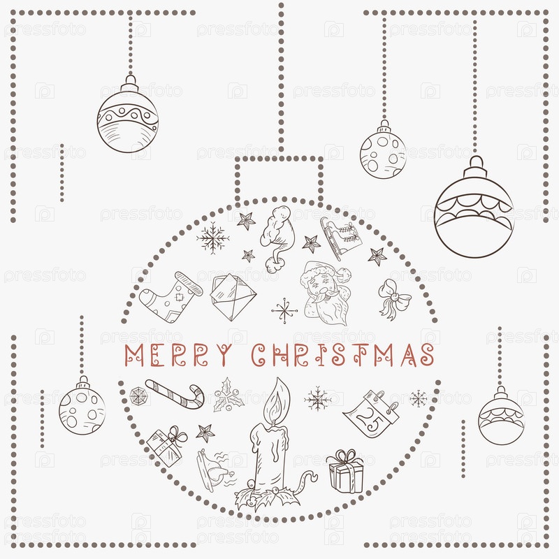 Рождественская контурная иллюстрация в стиле детских рисунков Рождественские элементы дизайна в рождественском шаре Рождественская свеча