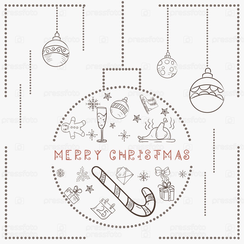 Рождественская контурная иллюстрация в стиле детских рисунков Элементы рождественского дизайна в виде елочного шара большая конфета
