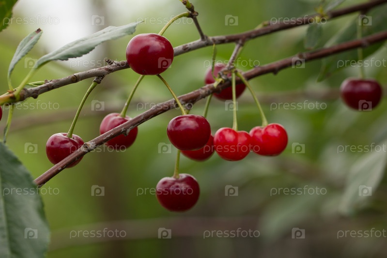В саду спелая вишняспелая красная вишня на дереве