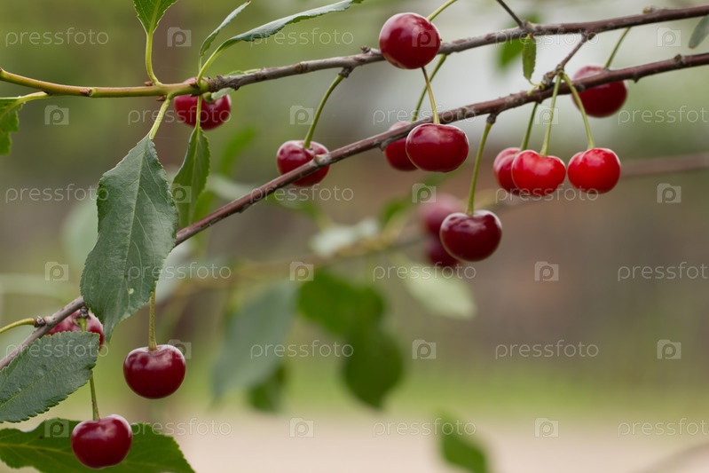 В саду спелая вишняспелая красная вишня на дереве