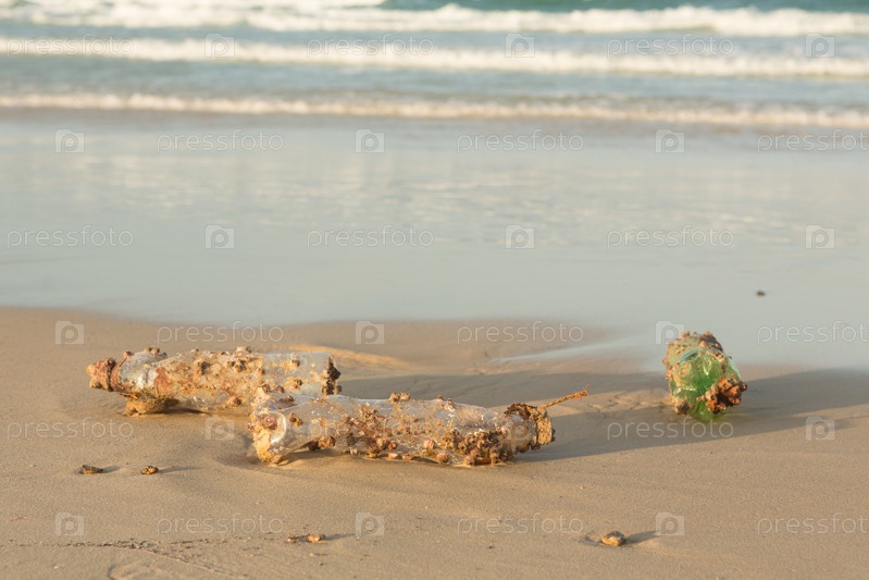 Пластиковые изделия все больше засоряют природу. Пластиковая бутылка покрывается морскими ракушками и губками (обрастателями) и выбрасывается на берег, загрязнение моря. Природа борется с мусором