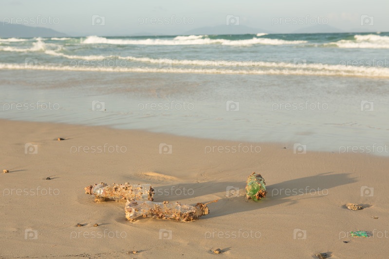 Пластиковые изделия все больше засоряют природу. Пластиковая бутылка покрывается морскими ракушками и губками (обрастателями) и выбрасывается на берег, загрязнение моря. Природа борется с мусором
