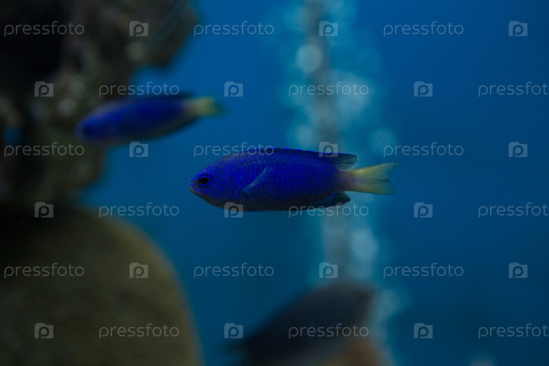 Голубая рыбка-хирург Paracanthurus hepatus в аквариуме Вьетнама