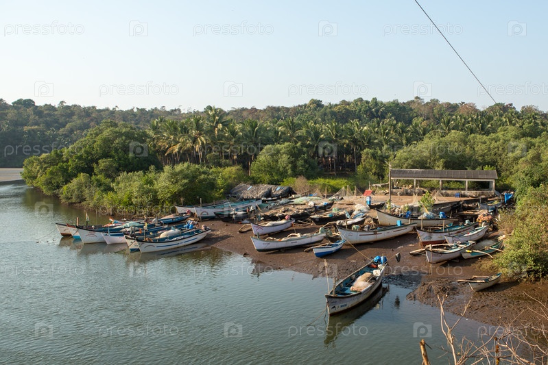 Парк, традиционные рыбацкие лодки на пирсе