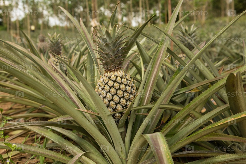 Ананас, тропический фрукт, растущий на ферме,