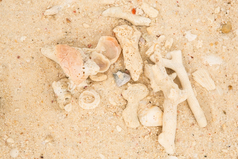 Кораллы и ракушки на песке