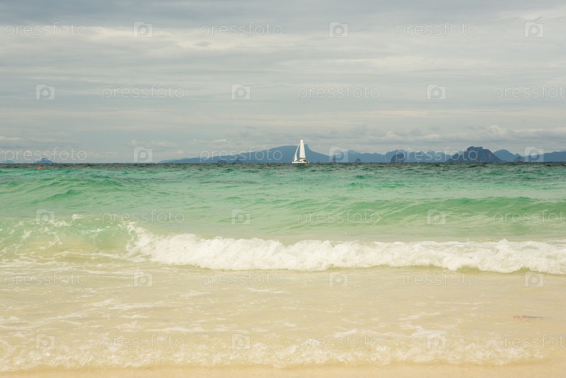 Парусные корабли с белыми парусами в море