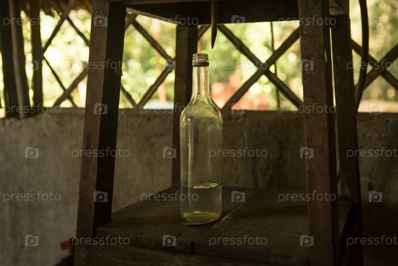 Пустая бутылка из-под масла из прозрачного белого стекла