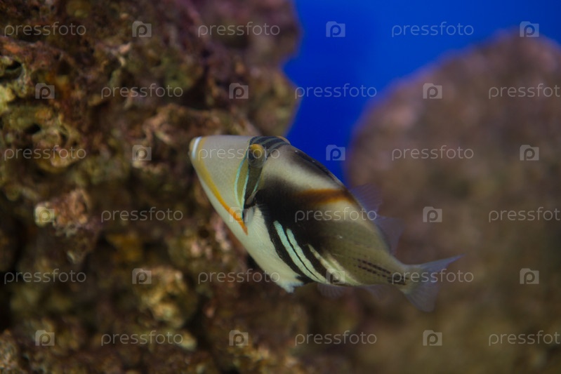 Лагунный спиннорог Rhinecanthus aculeatus, также известный как спиннорог Пикассо