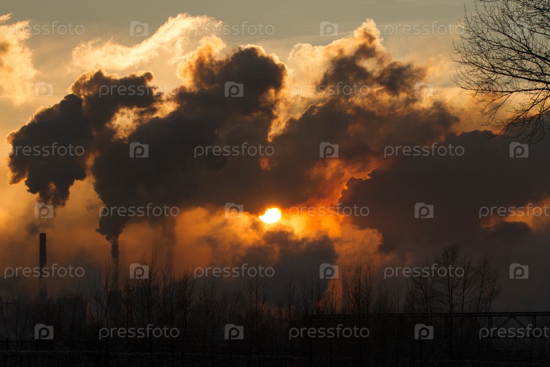 Завод с дымом и загрязнением воздуха