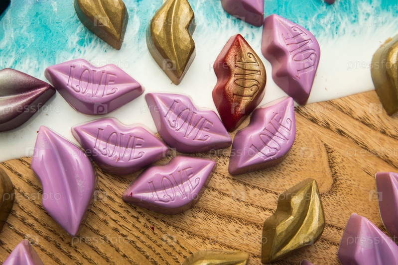 Вкусные шоколадные конфеты, крупный план, разные цвета
