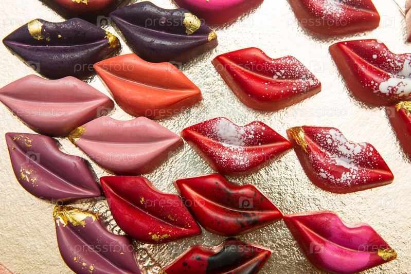 Вкусные шоколадные конфеты, крупный план, разные цвета