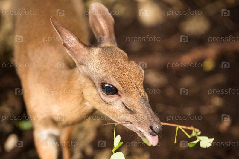 Пугливые миниатюрные антилопы в зоопарке Занзибара, Африка
