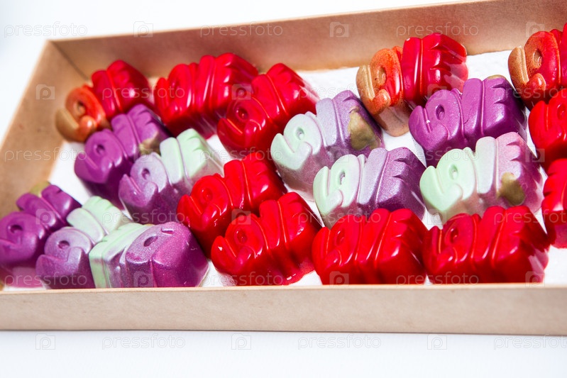 Вкусные шоколадные конфеты, крупный план, разные цвета