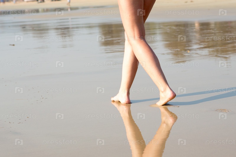 Женщина идет по пляжу