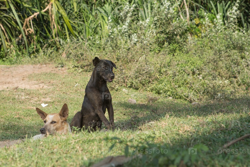 Бродячая собака на открытом воздухе наблюдает за людьми