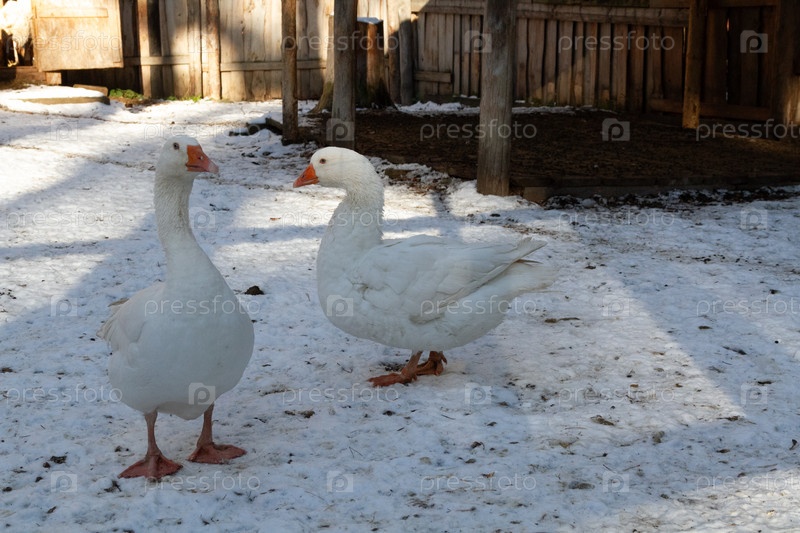 Несколько гусей на ферме