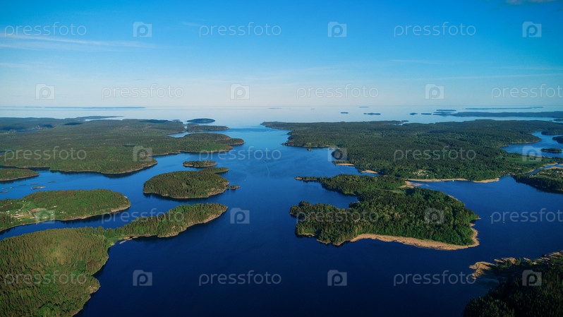 Большое скопление островов на Ладожском озере в заливе Якимаваара в Республике Карелия
