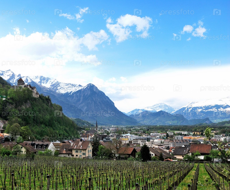 Вид на замок Вадуц, Лихтенштейн. апрель 2012 г