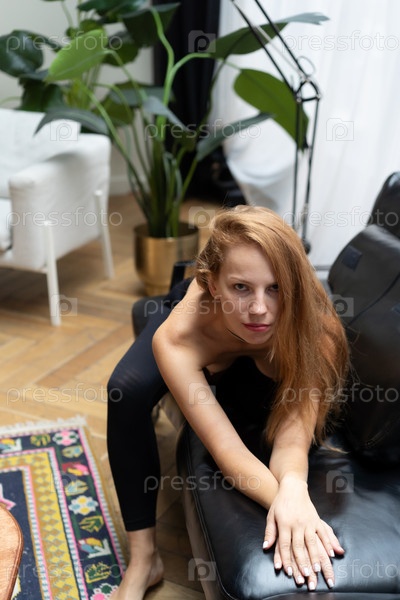Портрет молодой красивой женщины с распущенными волосами в студии