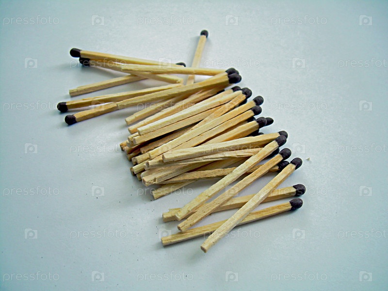 Высыпанные спички на белом фоне