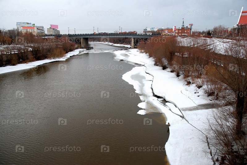 Река Омь ранней весной, город Омск, Сибирь, Россия